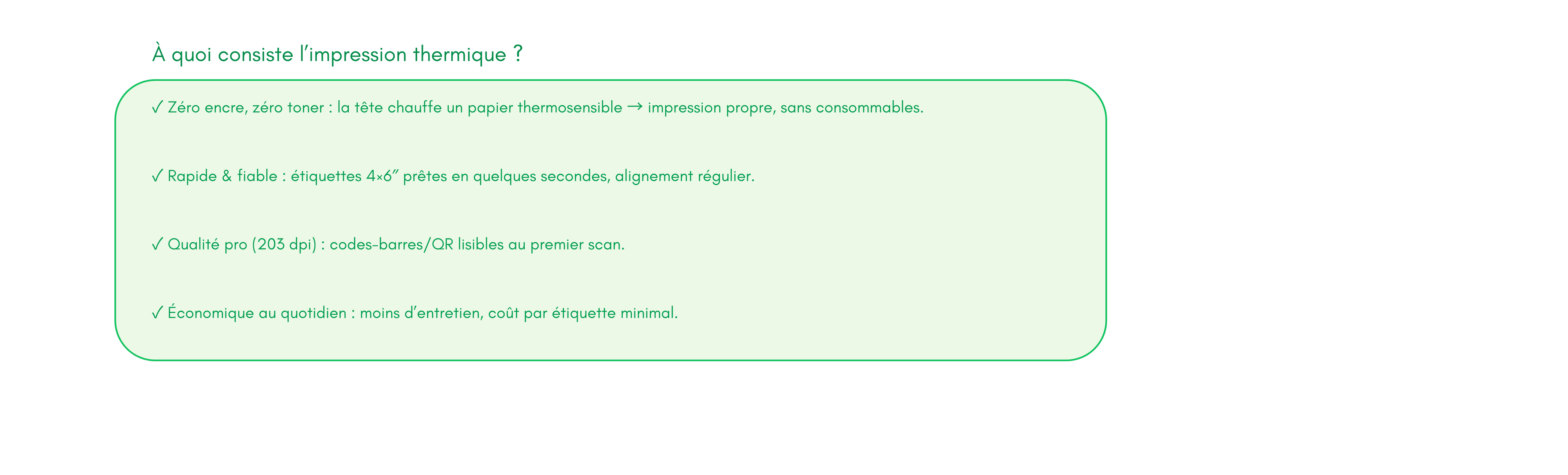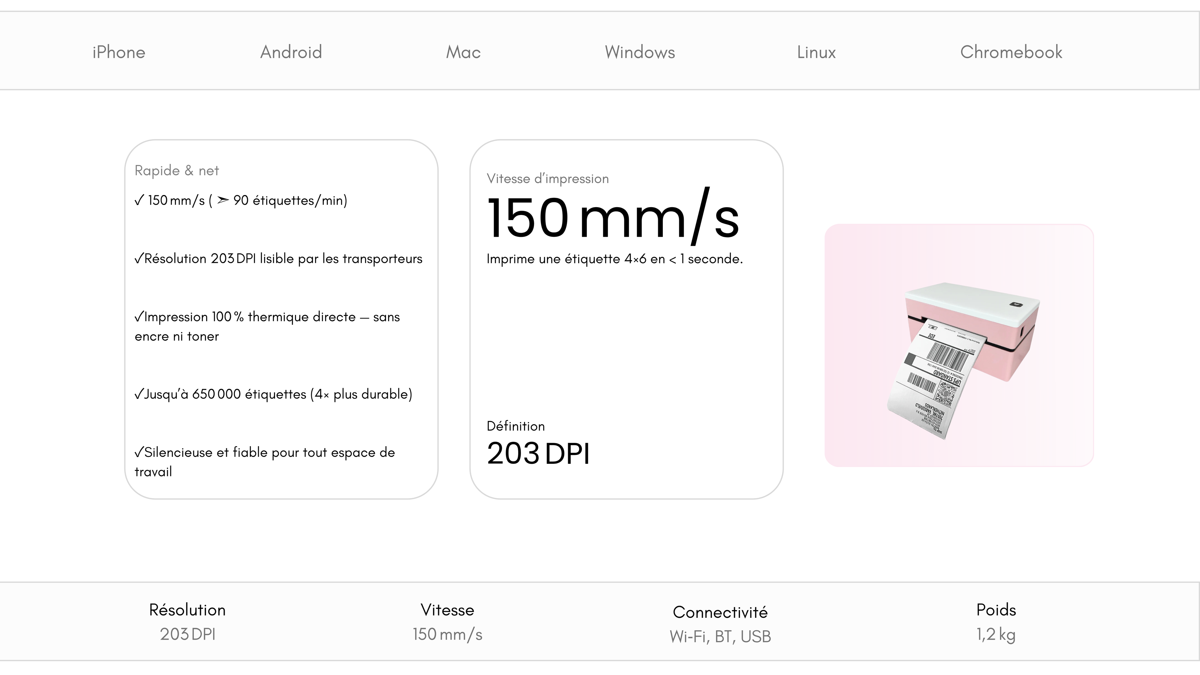 Qualité premium : résolution 203 DPI, idéale pour logos, QR codes et codes-barres.